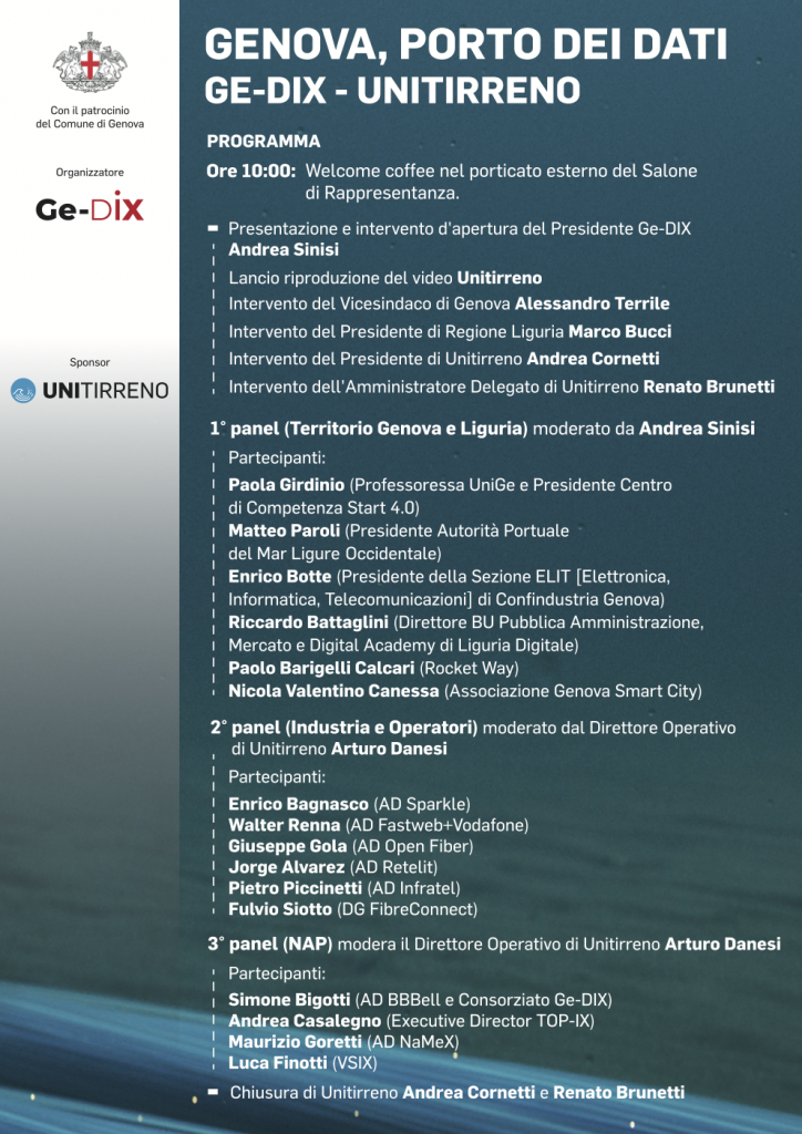 L’evento è organizzato in occasione del completamento del sistema di cavi sottomarini Unitirreno.